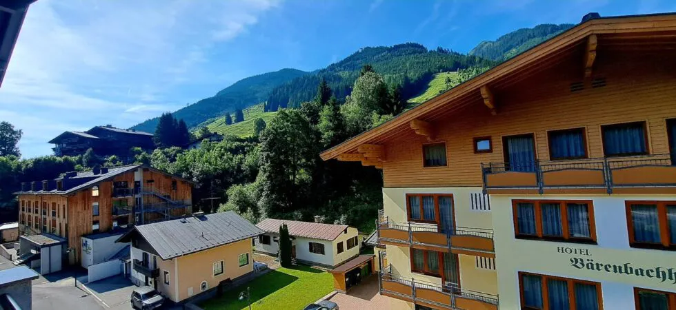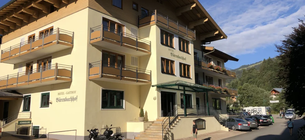 Hotel Bärenbachhof ligger i en vacker omgivning, några minuters promenad från Saalbachs centrum. Hotellet har renoverats men erbjuder fortfarande klassisk österrikisk charm och stora, mysiga rum. På Bärenbachhof är servicen i topp och stämningen är på topp.