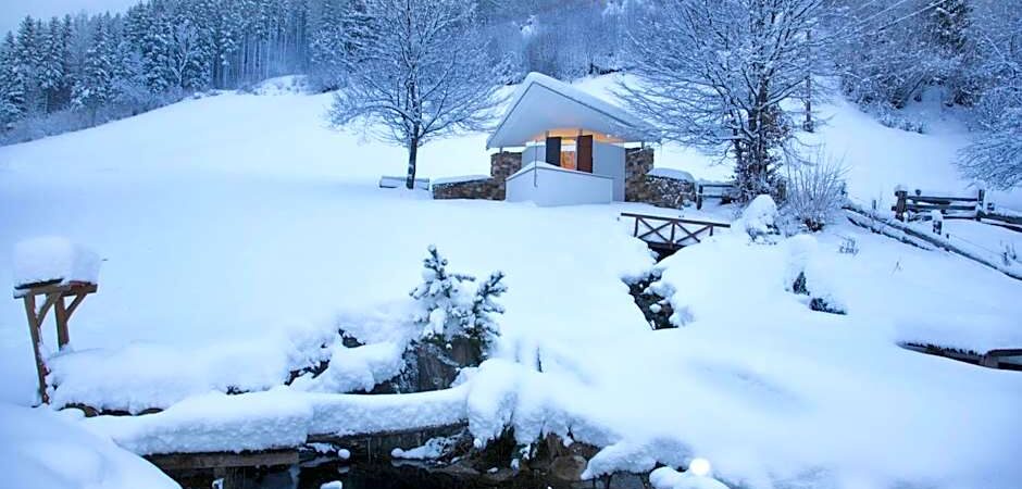 När du går ut är du i ett område där backarna och skidliftarna ligger inom bekvämt räckhåll, samtidigt som hotellet erbjuder en lugnare miljö än de livligaste skidorterna. Du kan ta den kostnadsfria skidbussen från hotellet till det närliggande skidområdet eller köra några minuter och vara i backarna själv. Efter en aktiv dag kan du återvända till hotellets wellnessavdelning med bastu och ångbad, sitta i baren eller på terrassen med utsikt över dalen, eller äta middag i restaurangen som serverar lokala specialiteter från hotellets egen gård.