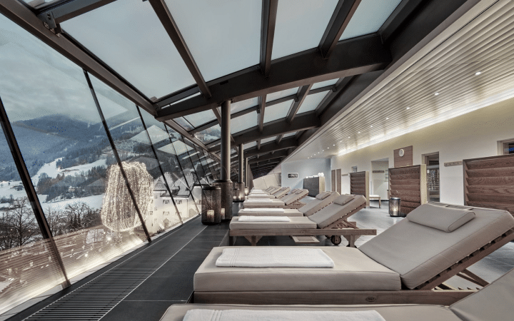 Hotellet har en spa- och hälsoavdelning med en 46 meter lång inomhuspool med panoramautsikt, bastu, turkiskt ångbad och olika behandlingsalternativ som massage, ansiktsbehandlingar och kroppsskrubb. Det finns också ett fitnesscenter för dem som vill hålla sig i form. Du kan även boka tillgång till dagspaet mot en avgift, med rumsservice dygnet runt och daglig städning. När du bor här har du tillgång till gratis skidbuss och skidförråd så att du enkelt kan ge dig ut i backarna.
