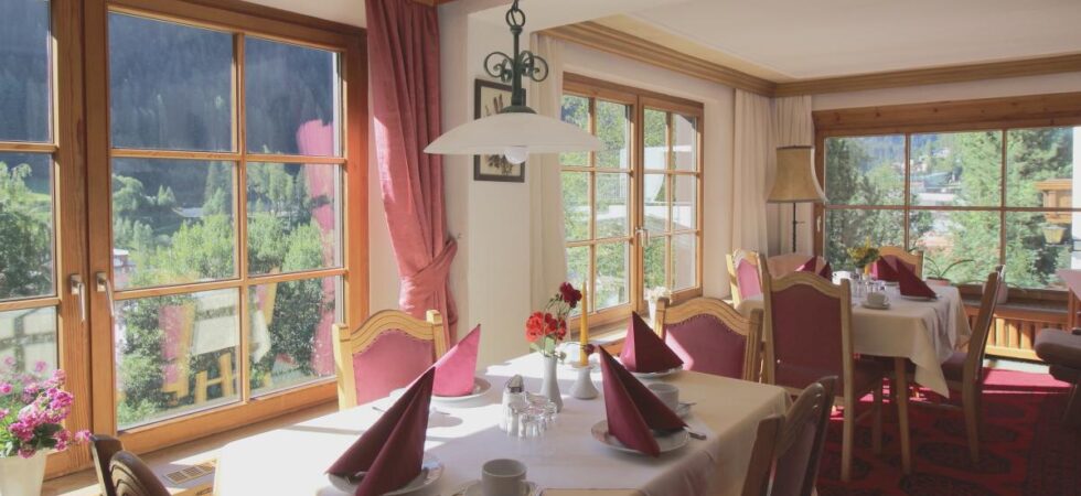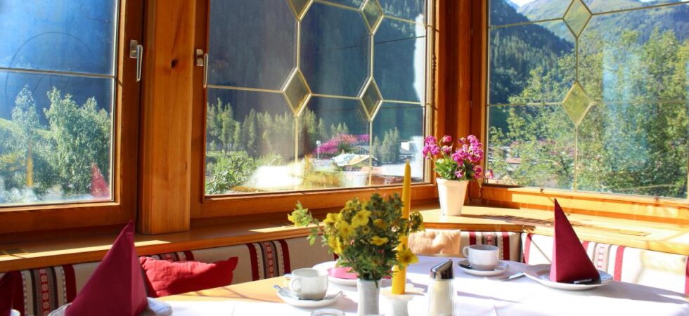 På morgonen serveras en rejäl frukostbuffé i den ljusa och inbjudande matsalen med panoramautsikt över bergen, som ingår i din vistelse. Här kan du börja dagen med färskt bröd, kallskuret och varma drycker, redo för nya upplevelser i Alperna. Efter en aktiv dag kan du koppla av i Pension Alpenheims lounge eller njuta av solen på terrassen där du kan luta dig tillbaka och blicka ut över byn och de omgivande bergen.
