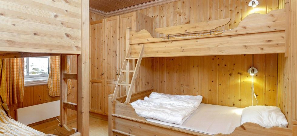 Soveværelse-1= 1 dobbeltseng. Soveværelse-2= 1 køjeseng med 120 cm bred underkøje, 1 køjeseng. Soveværelse-3= 2 køjesenge.