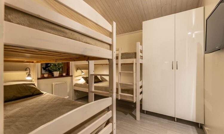 Stugorna är inredda på olika sätt och har plats för 6-8 personer.