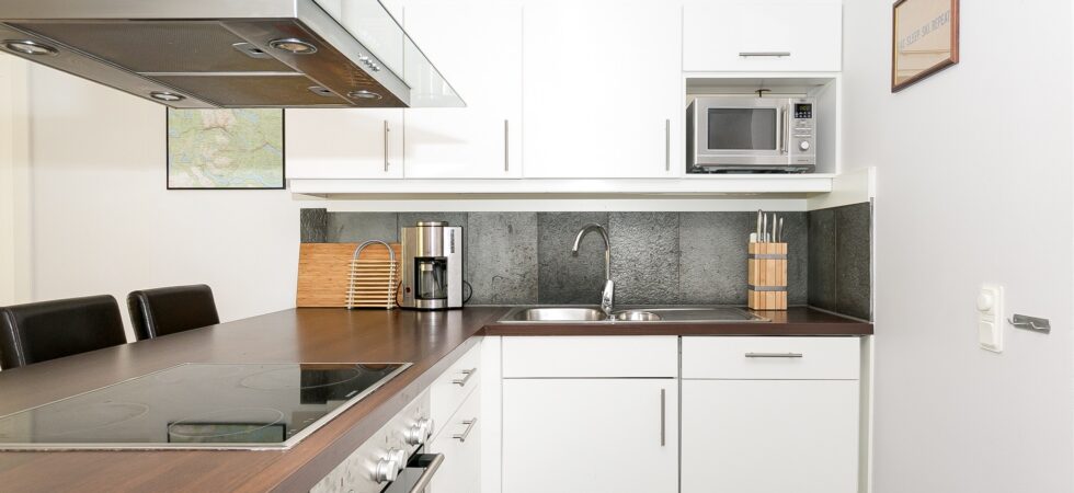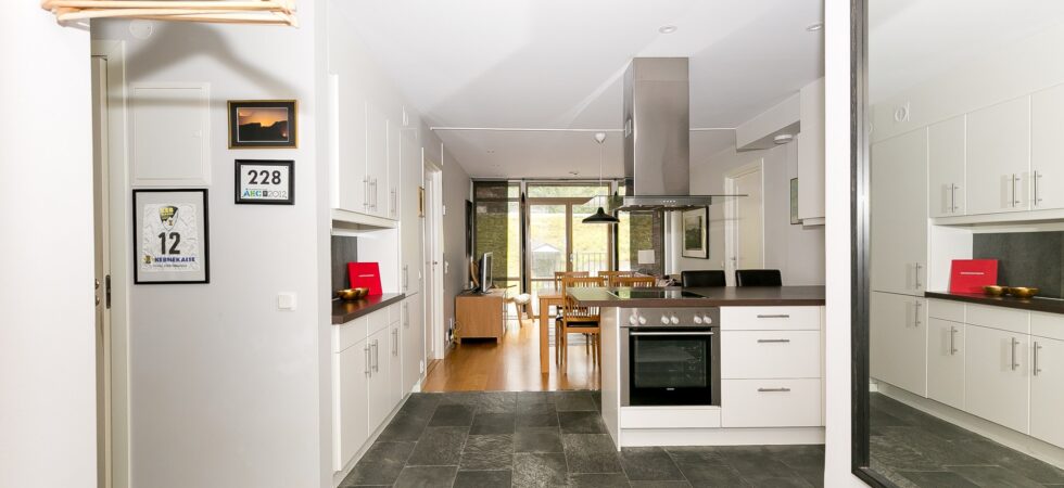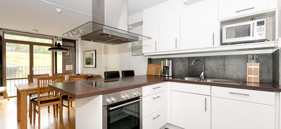 Køkkenet indeholder mikro, køleskab med fryser, elkomfur med ovn, opvaskemaskine.