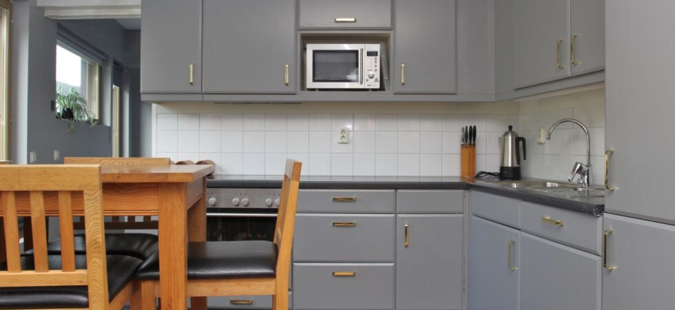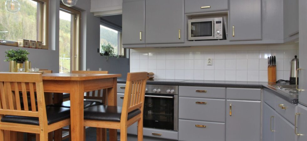 Køkkenet indeholder elkomfur med ovn, køleskab, fryser, opvaskemaskine, mikro.