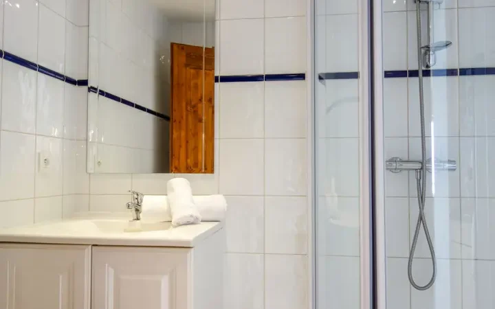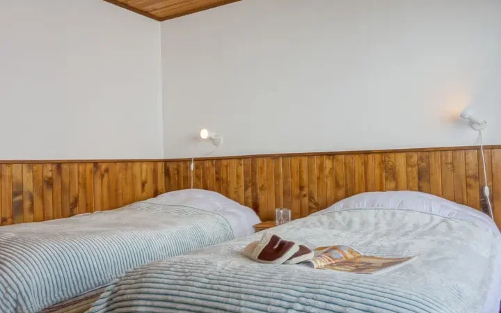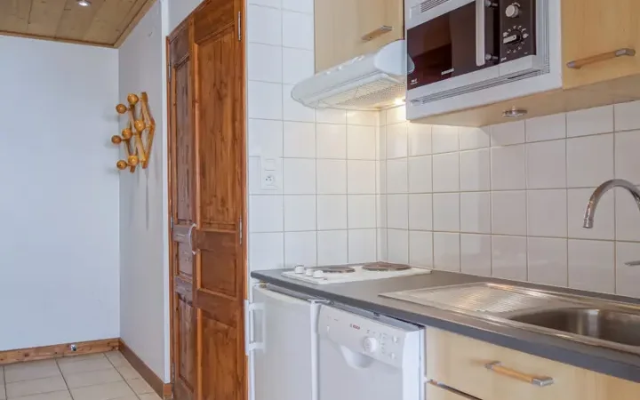 1 værelse med 2 senge (105 cm). Kogeniche i indgang (2 kogeplader, opvaskemaskine, mikroovn).