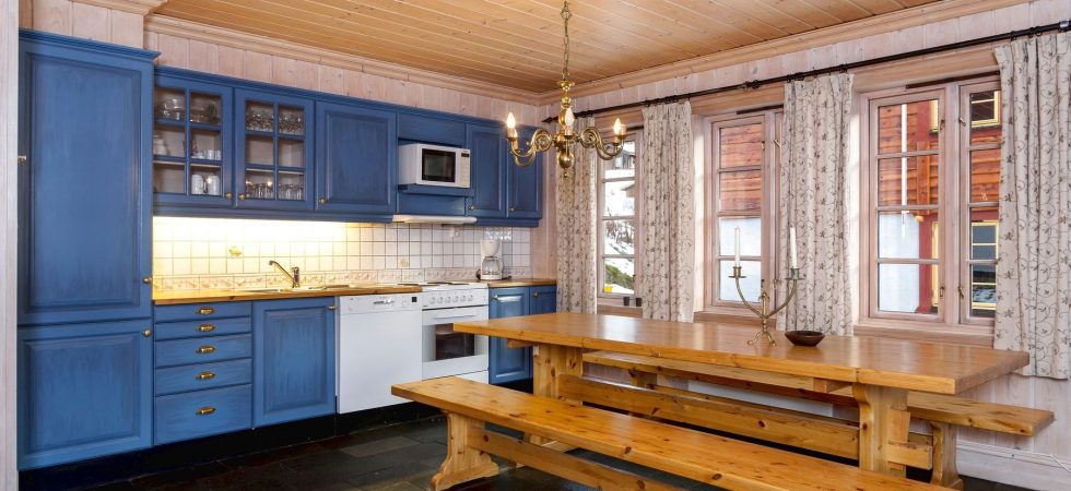 Køkkenet indeholder bl.a: køleskab m/fryser, komfur, mikro, opvaskemaskine.