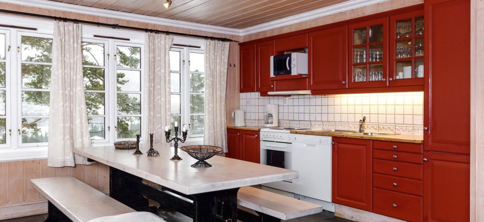 Køkkenet indeholder bl.a: køleskab m/fryser, komfur, mikro, opvaskemaskine.